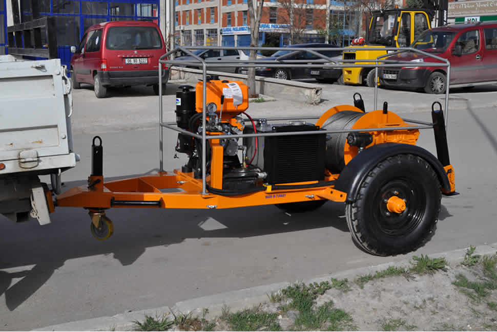 Power cable 8000kg towing capacity, this machine is the most important feature is the possibility of adjusting the cable pulling force. Although tensile strength 8000kg If the precision and, for example, if we have a cable with 2000 kg if it is desired to withdraw from the machine by adjusting the tensile strength of 2000 kg is able to come to power on the cable can prevent more than that. ANT has 24 hp diesel engine. 12 mm is 500 mt of steel wire rope. Fully hydraulic system works with