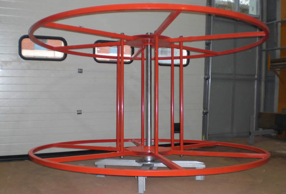 Gas, water pipes and telecommunications cables protection housing for moving the coiled pipe, a pipe carrying various types and an auxiliary apparatus is made to be. The part of the reel drum is made to be adjustable to three different criteria.